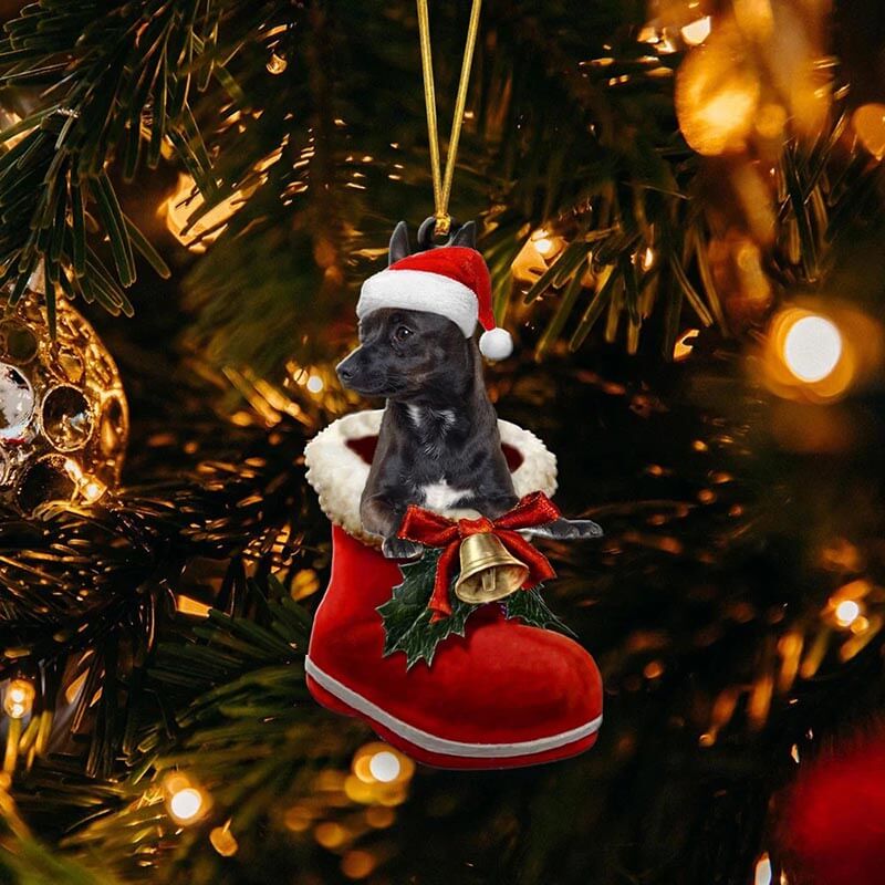 Black Chihuahua In Santa Boot Christmas Hanging Ornament SB058
