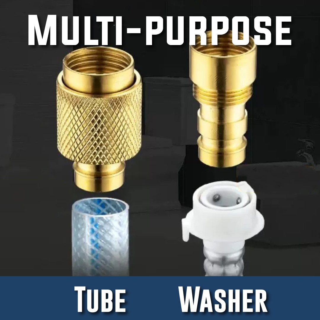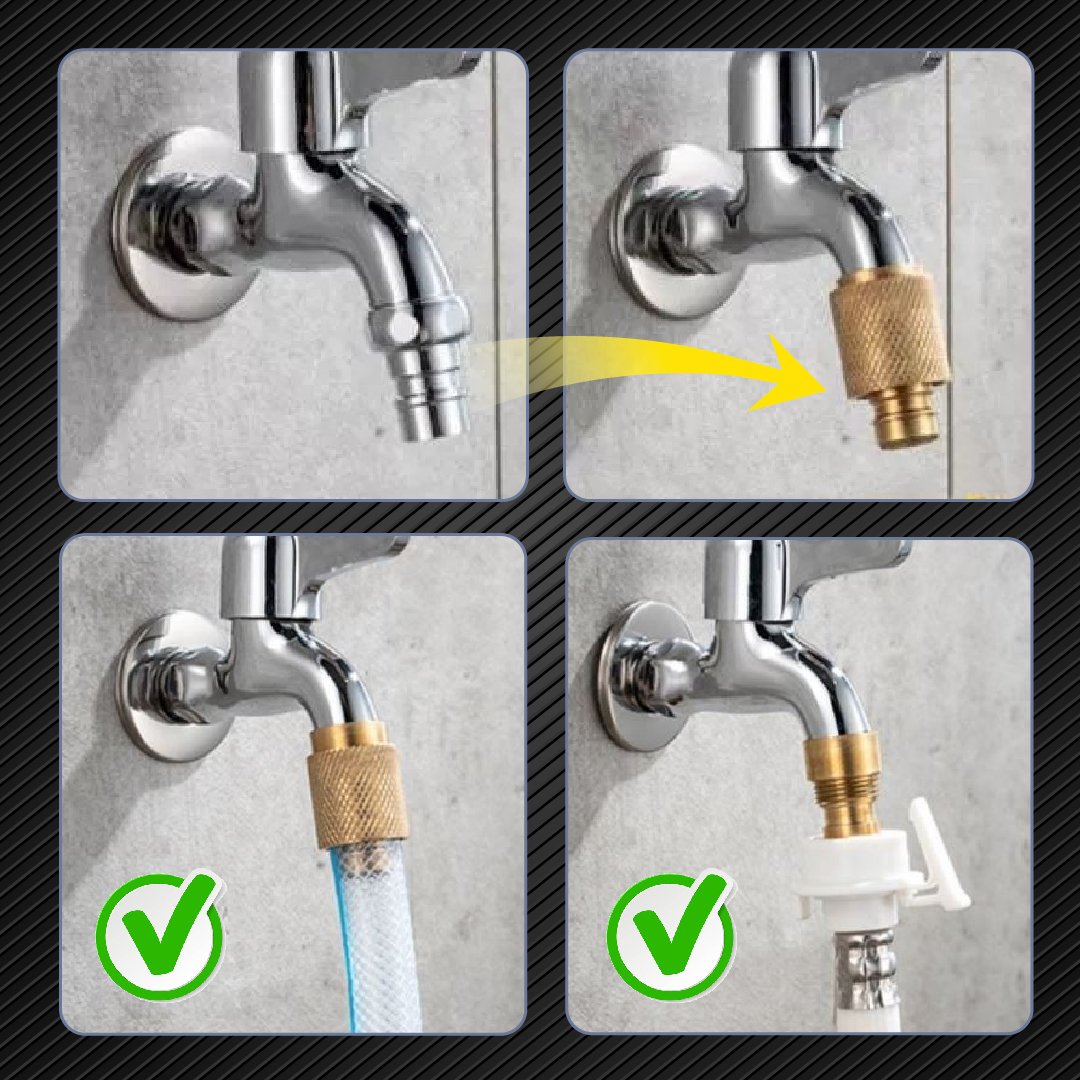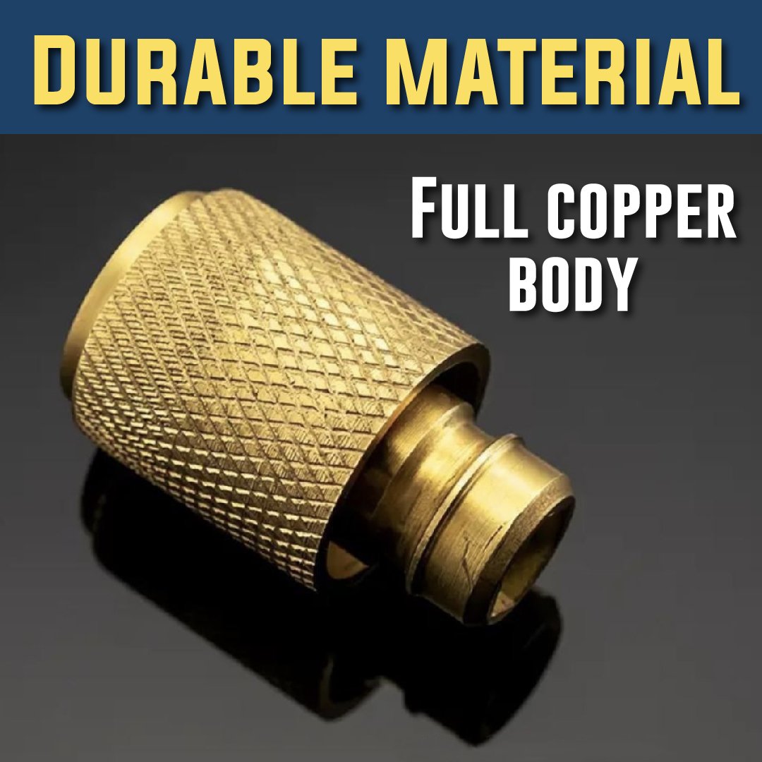 This Faucet To Hose Adapter will connect a hose to a faucet, locking the hose securely for steady and leakproof water flow. This adapter offers an easy connection. This Faucet To Hose Adapter is full copper body for greater durability and will endure the rigors of everyday use.