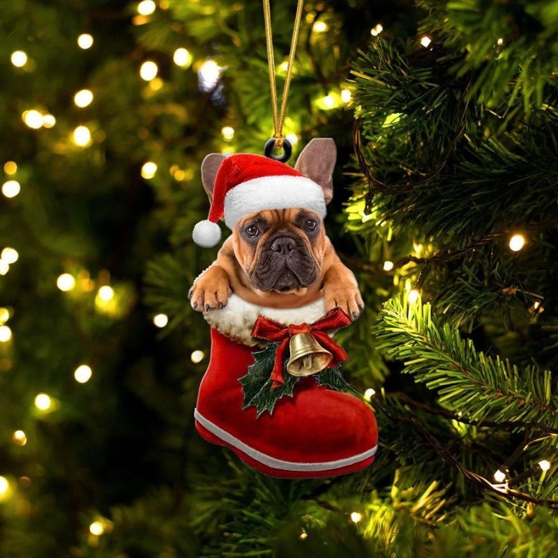 French Bulldog In Santa Boot Christmas Hanging Ornament SB087