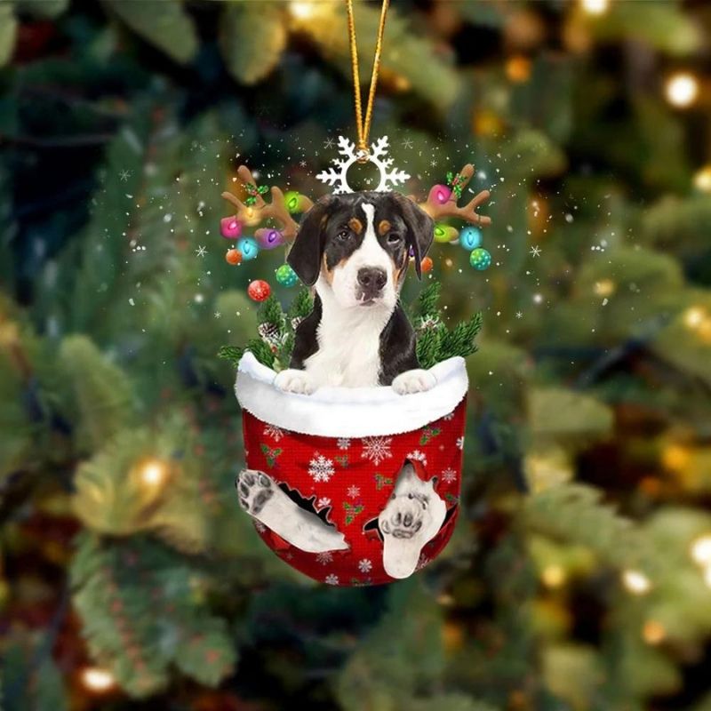 Greater Swiss Mountain Dog In Snow Pocket Christmas Ornament SP132