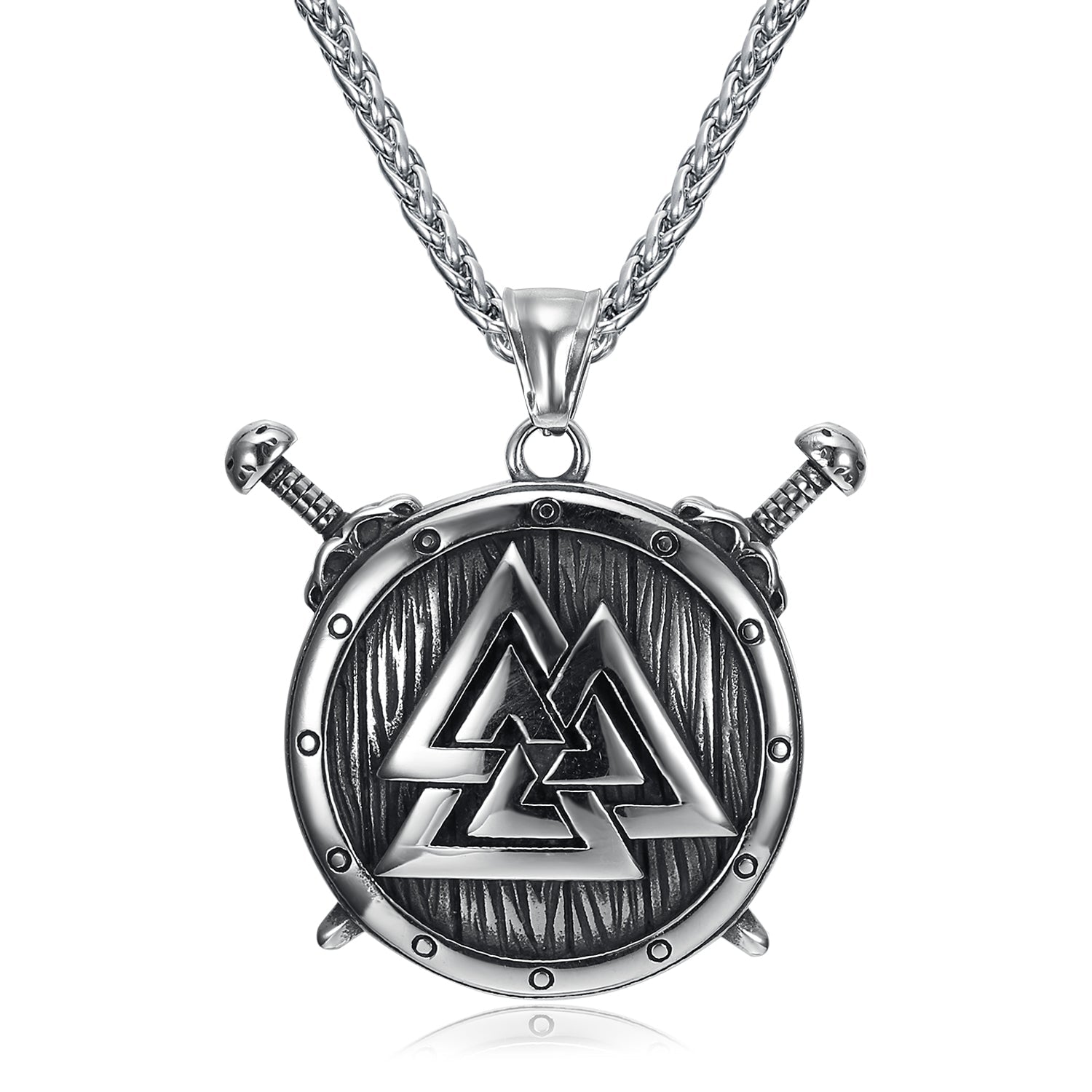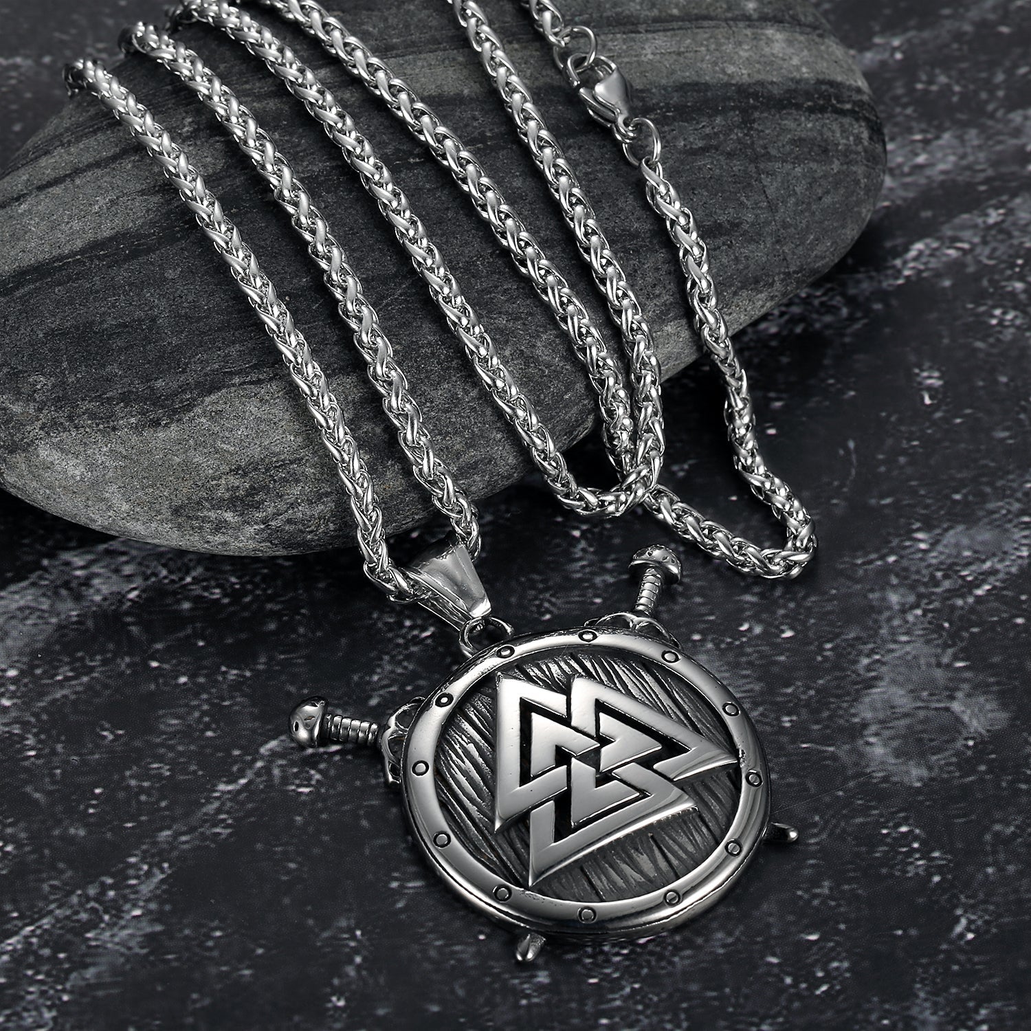 Nordic Pride Stainelss Steel Nordic Shield and Valknut Symbol Pendant & Chain