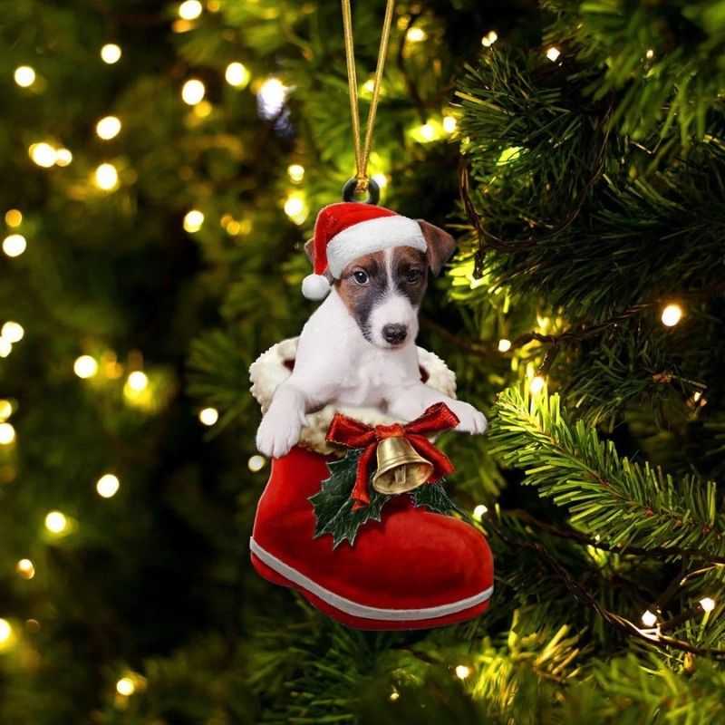 Smooth Fox Terrie In Santa Boot Christmas Hanging Ornament SB162